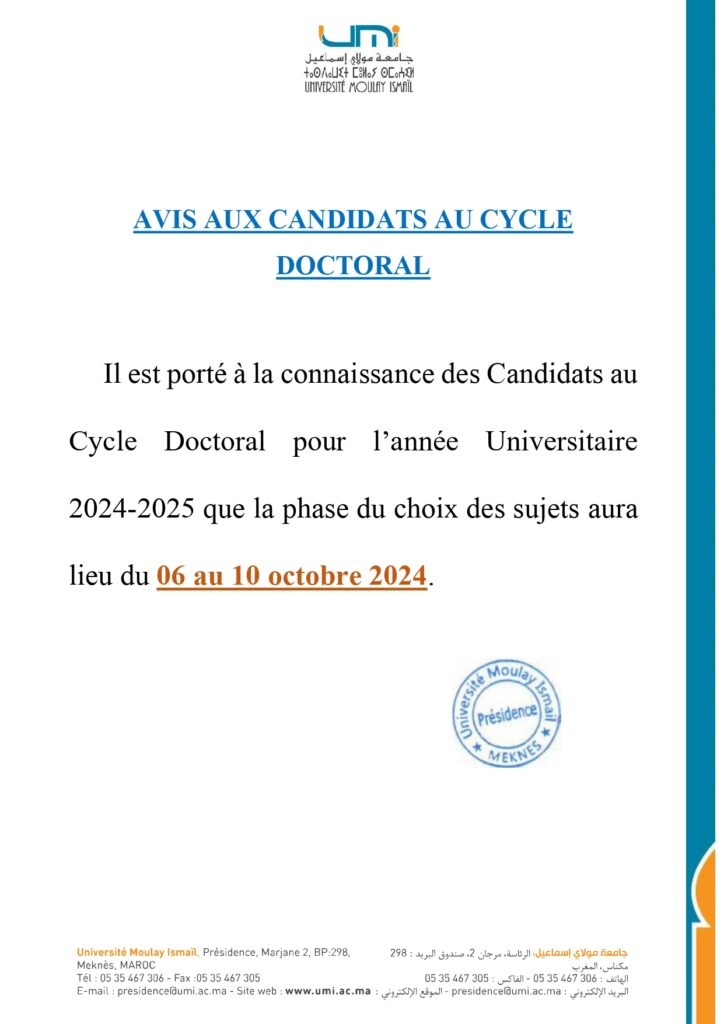 Avis aux candidats au cycle doctoral
