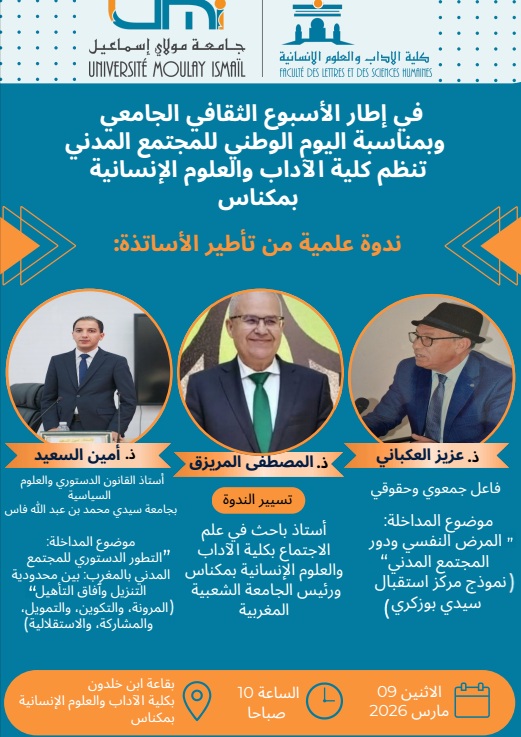 ندوة علمية في إطار الأسبوع الثقافي الجامعيوبمناسبة اليوم الوطني للمجتمع المدني