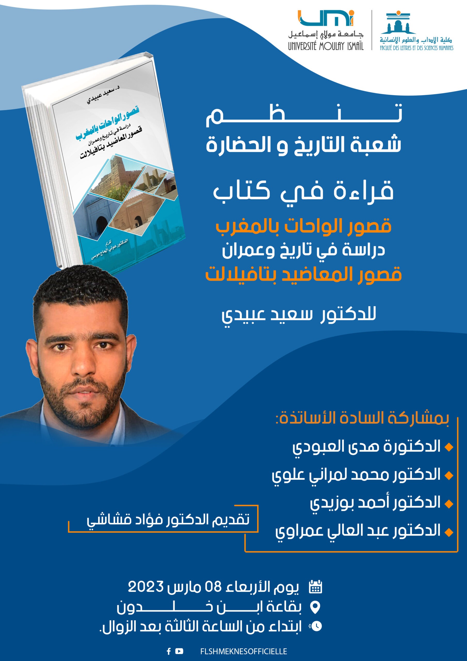 وذلك يوم الأربعاء 08 مارس 2023 بقاعة ابن خــلـدون ابتداء من الساعة الثالثة بعد الزوال.